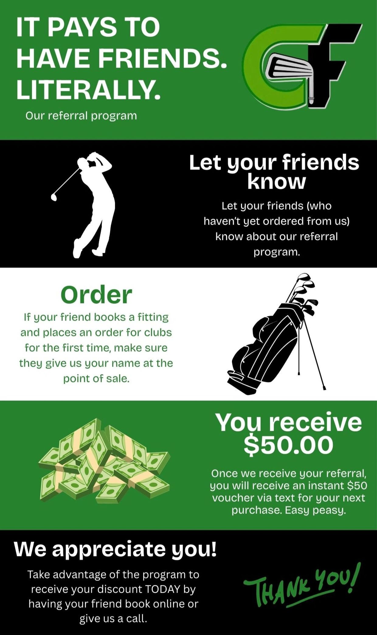 Full bag fitting fee WAIVED with the purchase of 8 or more clubs ($395 value). All other fittings just $50 with any club purchase. Book at link below ⬇️